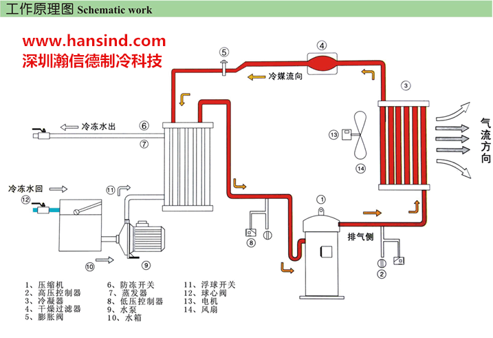 風(fēng)冷式冷水機(jī)組工作原理:深圳瀚信德為你提供最專業(yè)的制冷原理分析,并免費(fèi)提供風(fēng)冷式冷水機(jī)組工作原理高清大圖,歡迎來電索?。』螯c(diǎn)擊查看風(fēng)冷式冷水機(jī)組工作原理圖 。