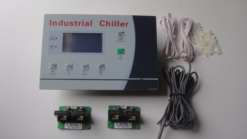 GW532A冷水機(jī)控制器,冷水機(jī)專(zhuān)用液晶顯示控制器一套(包括:安裝鐵板,控制主板,(電流互感器2個(gè)/選配件)面貼,數(shù)據(jù)線,感溫線,產(chǎn)品說(shuō)明書(shū))